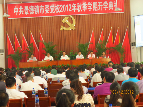 9月12日上午,我校(院)2012年秋季主体班正式开学,市委副书记、市委党校校长黄河出席开学典礼并讲话。县级领导干部进修班、中青年干部培训班、乡镇(街道)干部进修班的学员、市委组织部分管干训工作的领导以及党校全体教职员工等近200人参加了开学典礼。