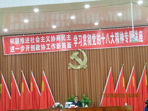 12月3日上午,市政协主席梁高潮在我校礼堂报告厅作了题为《积极推进社会主义协商民主,进一步开创政协工作新局面》专题讲座。梁高潮结合贯彻党的十八大精神,从“人民政协是怎么回事、人民政协干些什么事、怎样做好人民政协那些事”三个方面,用生动形象、通俗易懂的语言讲解了人民政协的发展历程、组织性质、主要职能和人民政协组织的特点和优势。市政协副主席汪小玲、秘书长汪金林参加了报告会。参加党校2012秋季县干班和第十期中青班全体学员、市政协机关干部和党校教职工近200人聆听了专题讲座。别开生面的形式、深入浅出的语言,使得整场报告掌声和笑声不断。