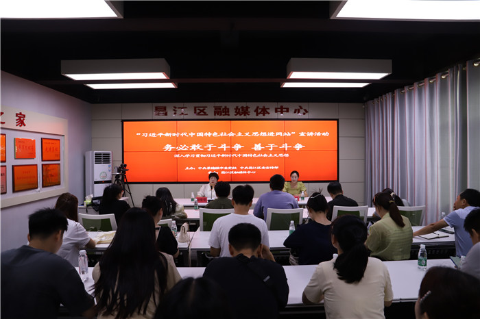 7月19日上午,市委党校与昌江区委宣传部、昌江区融媒体中心联合开展习近平新时代中国特色社会主义思想进网站宣讲活动。市委党校讲师郝焕参与授课,昌江区融媒体中心全体采编人员、各乡镇(街道)文明实践员等30余名网络工作者参加活动。