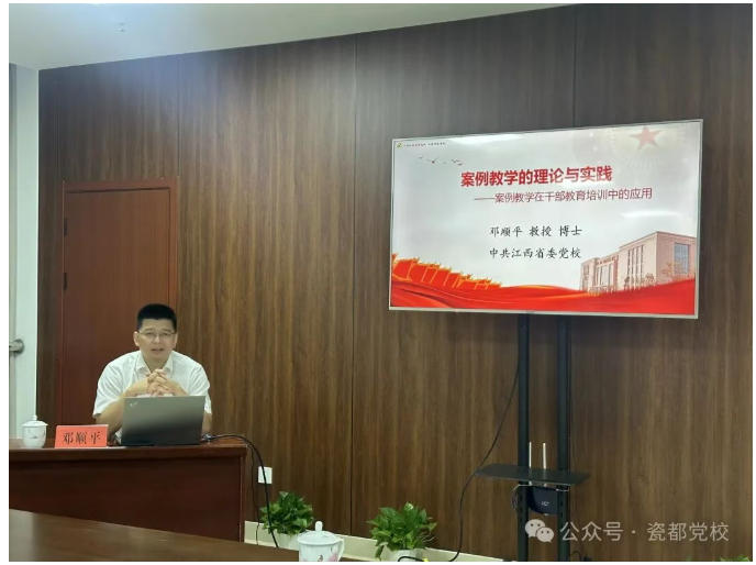 专题辅导会上,省委党校文化与科技教研部负责人邓顺平教授作题为《案例教学的理论与实践》辅导报告。邓教授结合自身丰富教学经验,从案例教学的构成要素、教学准备、教学过程及案例教学的中国实践等方面进行了系统讲解。