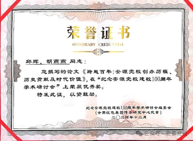 党史党建教研室副主任、邱辉老师的文章《跨越百年:安源党校创办历程、历史贡献及时代价值》入选全国红色基因传承研究中心、中共江西省委党史研究室、中共江西省委党校(江西行政学院) 、中共萍乡市委举办的“坚守践行‘党校初心’ 暨纪念安源党校建校100周年”理论研讨会优秀奖。